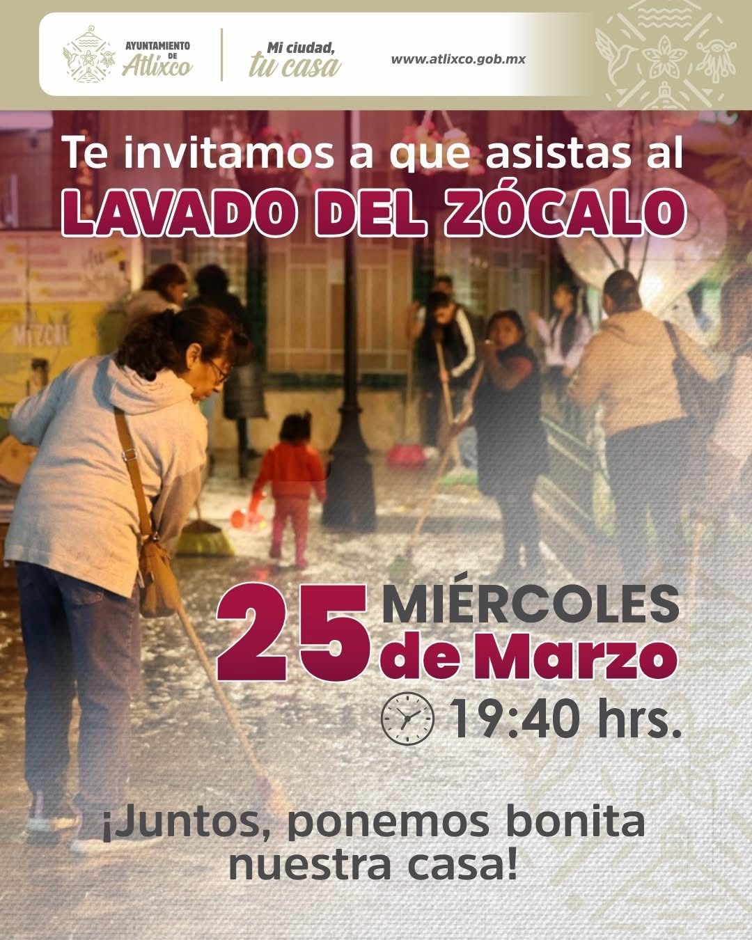 La presidenta municipal de Atlixco, Ariadna Ayala, junto con vecinos, comerciantes y funcionarios de gobierno llevaran a cabo el lavado y limpieza del zócalo este...