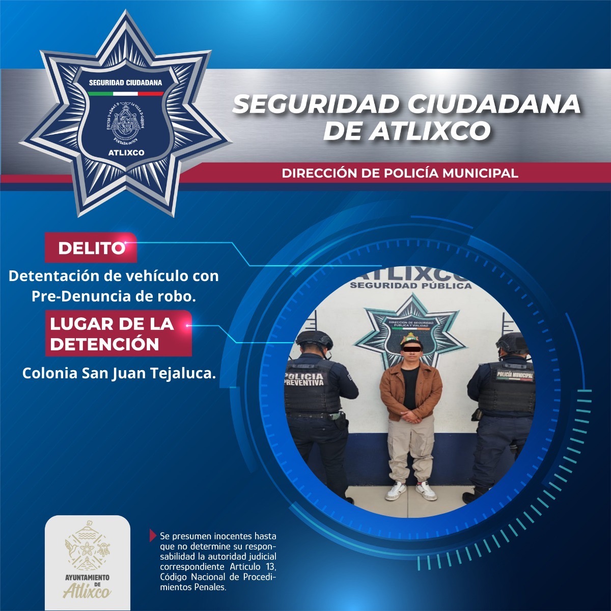 Elementos de la Secretaría de Seguridad Ciudadana de Atlixco aseguraron un vehículo con predenuncia de robo y detuvieron a un masculino durante un operativo en...