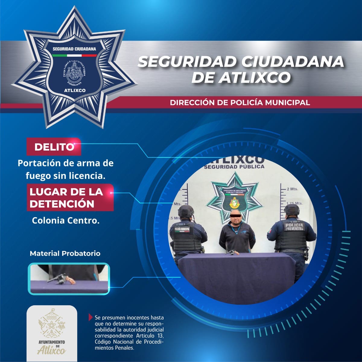 Elementos de la Secretaría de Seguridad Ciudadana de Atlixco detuvieron a un masculino por la probable portación ilegal de un arma de fuego durante recorridos...