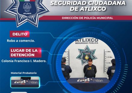 Elementos de la Policía de Atlixco detuvieron a un masculino por su probable responsabilidad en el delito de robo a comercio, tras un reporte ciudadano en la colonia Francisco I. Madero. Los hechos ocurrieron en la Avenida Independencia,…