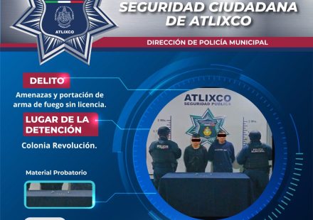 Elementos de la secretaría de seguridad ciudadana de Atlixco detuvieron a dos personas del sexo masculino en la colonia revolución, señaladas por presuntas amenazas con arma de fuego. La detención se realizó gracias a un reporte recibido en el…