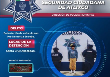 La Secretaría de Seguridad Ciudadana de Atlixco informó que, durante un recorrido de seguridad y vigilancia en la comunidad de Santa Cruz Axocopan, elementos de la Policía Municipal recuperaron una motocicleta con reporte de robo y aseguraron a…