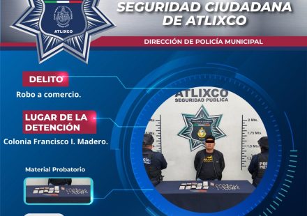 Elementos de la Policía de Atlixco detuvieron a un masculino por su probable responsabilidad en el delito de robo a comercio, tras un reporte ciudadano en la colonia Francisco I. Madero. Los hechos ocurrieron en la Avenida Independencia, esquina con…