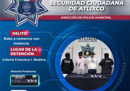 La Secretaría de Seguridad Ciudadana de Atlixco detuvo a dos hombres por su probable participación en el robo a un comercio en la colonia Francisco I. Madero, tras un reporte ciudadano durante recorridos de vigilancia. Los sujetos intentaron…