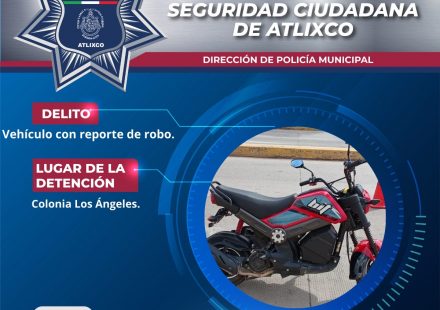 Elementos de la Policía de Atlixco recuperaron una motocicleta con reporte de robo durante labores de vigilancia en la colonia Revolución, tras atender un reporte emitido al número de emergencias 911. La propietaria informó que su motocicleta marca…