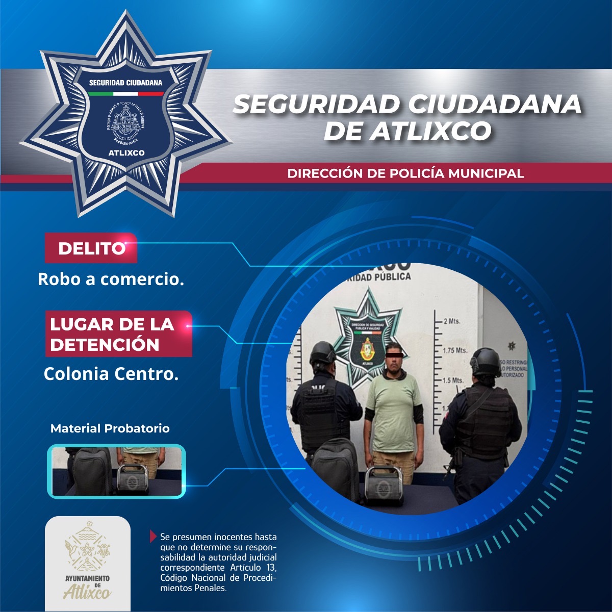 SECRETARÍA DE SEGURIDAD CIUDADANA DE ATLIXCO DETIENE A PRESUNTO LADRÓN EN EL CENTRO