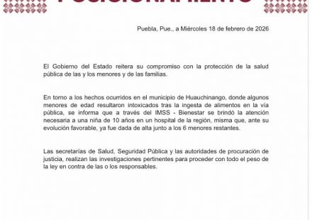 El Gobierno del Estado reitera su compromiso con la protección de la salud pública de las y los menores y de las familias. En torno a los hechos ocurridos en el municipio de Huauchinango, donde algunos menores de edad resultaron intoxicados tras la…